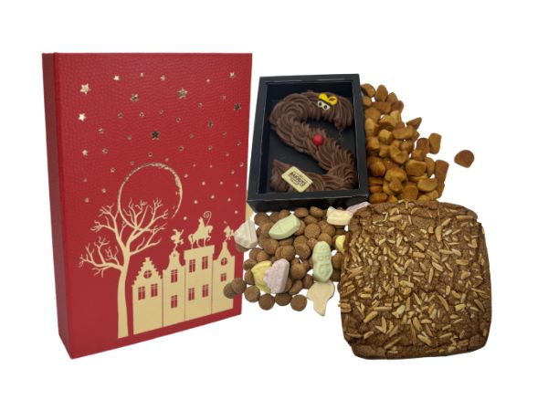 In het grote boek van Sinterklaas zit een chocolade letter, speculaas brokken, strooigoed en pepernoten